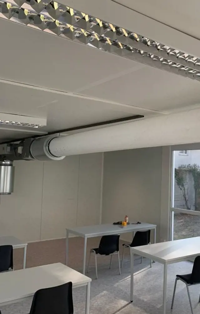 Diese Ansätze sind in Zeiten der Pandemie so nicht mehr tauglich. Das Primat hat heute die Herstellung einer möglichst hohen Luftwechselrate. Die Luftführung im Raum erfolgt durch eine Verdrängungslüftung. Hierbei ist neben der Zufuhr einer möglichst großen Frischluftmenge auch eine zielgerichtete Absaugung der „verbrauchten“ Luft wichtig. Einer der Hauptvorteile ist es, dass durch den Einsatz der Verdrängungslüftung Aerosolwolken verdünnt und aus dem Bereich der im Raum befindlichen Personen weggeführt werden können. Während der bevorstehenden Heizsaison wird das System durch die Thermik unterstützt, da die warme Luft nach oben steigt und auf ihrem Weg Aerosole und Schadstoffe mittransportiert. Unter der Zeltdecke lässt sich die belastetet Luft dann zielgerichtet Absaugen. Mehr erfahren