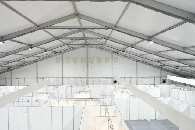 Losberger De Boer ist einer der größten Entwickler von temporären und permanenten Gebäuden in der Welt. Wir haben einen großen Lagerbestand sowie große Produktionsstätten, was bedeutet, dass wir immer genügend Material und Arbeitskräfte zur Verfügung haben, um Impfstellen wie vereinbart zu liefern.