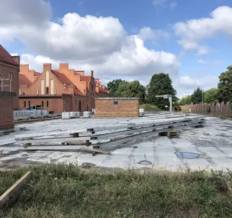 In einer rekordverdächtigen Zeit von nur 4 Monaten gelang es Losberger De Boer das neue Büro-Areal zu errichten. Eine besondere Herausforderung stellte die Lage des Konzerngeländes der Deutschen Bahn dar, denn es befindet sich unmittelbar an den Bahngleisen. Durch den hohen Vorfertigungsgrad war es möglich, die Modulelemente möglichst nah an die Gleisanlage zu transportieren und dort anschließend zu komplettieren.