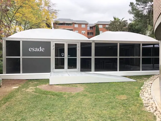 Nuestros auditorios temporales, aulas y cantinas o comedores pueden personalizarse para adaptarse mejor a su campus y a sus necesidades. Todas nuestras estructuras son modulares, lo que nos permite acomodar cualquier huella deseada. También pueden tener varios pisos de altura.