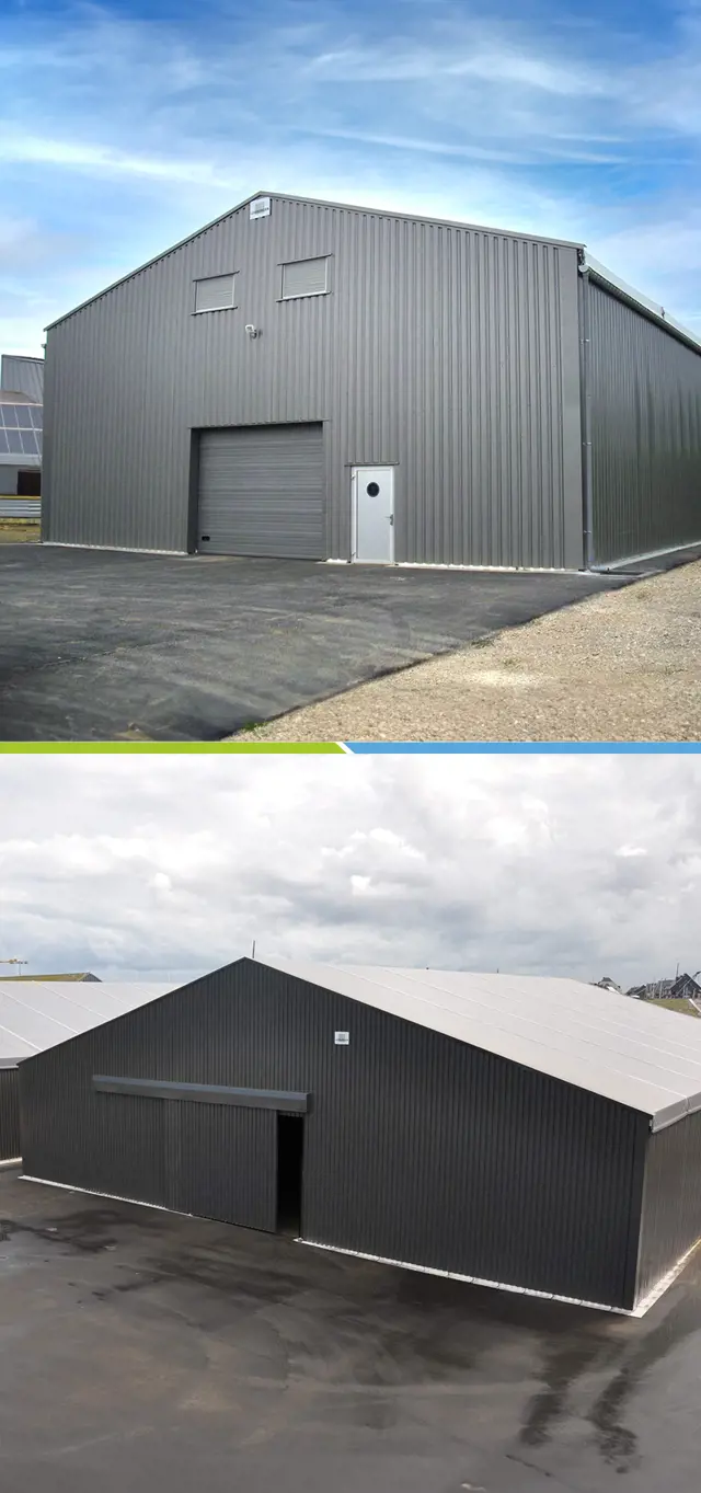 Nos bâtiments s’adaptent à tous vos projets. Les gammes Tradistock, Alustock, Prostock et Induflex déclinent le bâtiment de stockage à toiture bipente en plusieurs versions. Disponible en portée de 10 à 40 mètres avec une hauteur sous sablière de 3 à 8 mètres, chaque structure est modulable par travée de 5 mètres. Notre gamme de bâtiments préfabriqués est proposée en version simple ou isolée, en fonction des marchandises à couvrir. Elle bénéficie de délais de livraison et d’installation très courts. Selon le modèle de bâtiment, ces délais peuvent aller de quelques jours à quelques semaines.