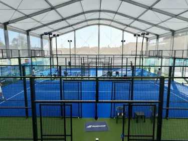 The solution: a modular Prosport canopy by Losberger De Boer—spanning over 1,190 m² and covering four full-sized padel courts.