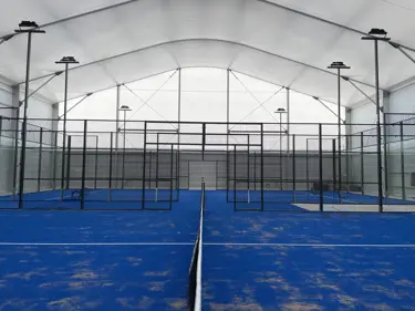 The municipality of Le Crotoy created two indoor padel courts with materials adapted to coastal conditions — fast, safe and fit for public use.