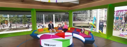 The challenge: to build a megastore for the Commonwealth Games 2022, that doubles as a fully functional TV Studio, in the heart of the city, on top of a fountain.