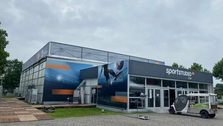 Thomas Fuhrmann, Head of Sports at ZDF, explains how the use of mobile space solutions as a film studio came about: "There was not enough capacity on the ZDF site because all the studios are completely full. That's why we built the temporary Sportstudio arena."