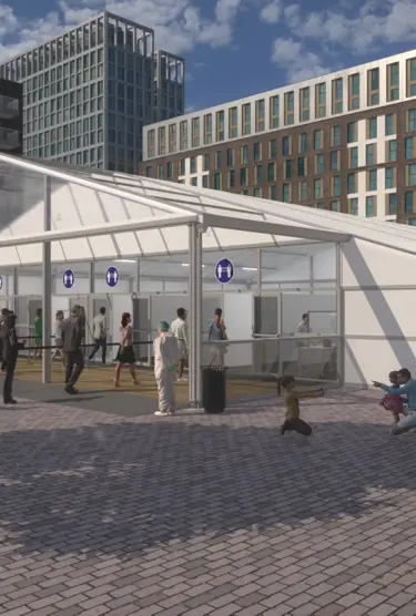 Our social distancing solutions for cities and municipalities include temporary polling or voting stations, Covid-19 test centres, vaccination centres and safe visiting facilities for nursing homes.