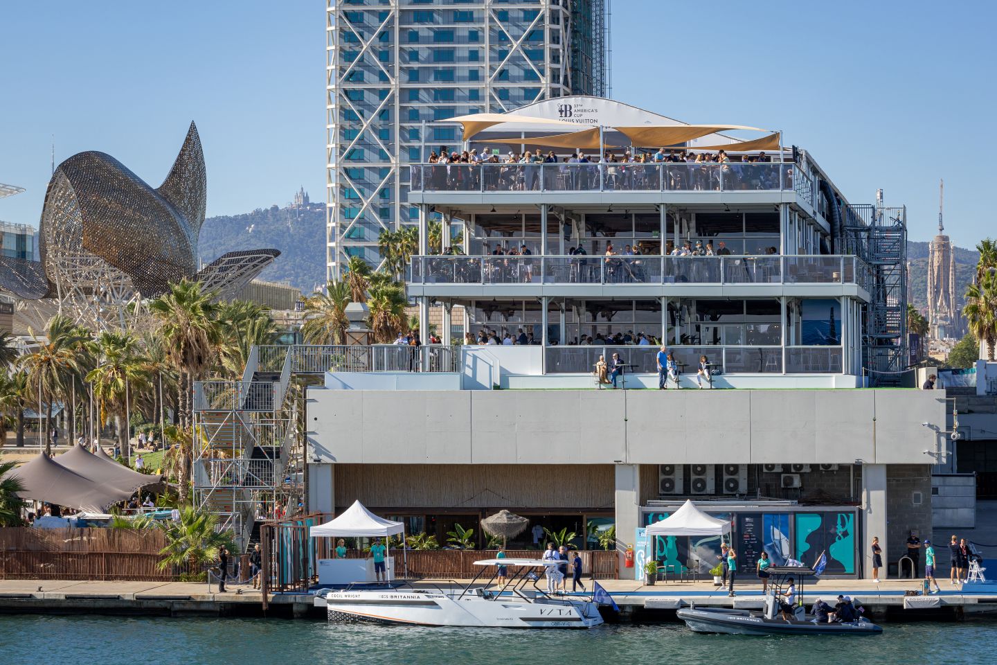 After assessing various locations, the Moll del Port quay was selected—a prime spot directly overlooking the racecourse. Structurally, the setup involved a 150 m² reception area connected to a 4,500 m² three- storey structure.