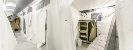 Following the successful completion of various trailer-mounted truck maintenance shelters for a key military client in the Middle East, we were approached by DBA to develop a mobile field camp that would provide comfortable living quarters for up to 135 soldiers and VIPs / officers during military exercises and foreign operations.