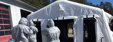 Our decontamination tents and cabins offer protection against CBRN risks, as well as toxic hazards, and can function as mass decontamination facilities or quarantine tents.