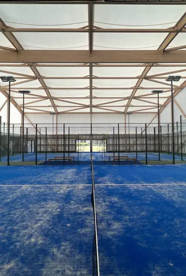 In addition to the aluminum or wood frame and Flat-tex or double-curvature canvas roofing membrane, we can help you lay foundations and install padel equipment, lighting and sports floors for a turnkey, ready-to-use facility.