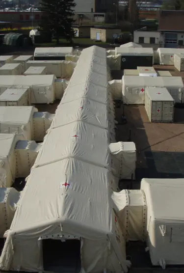 Our mobile field hospitals are designed to mitigate the often very harsh conditions faced by patients and medical staff, by providing them with a safe haven with, wherever possible, added comfort and privacy.